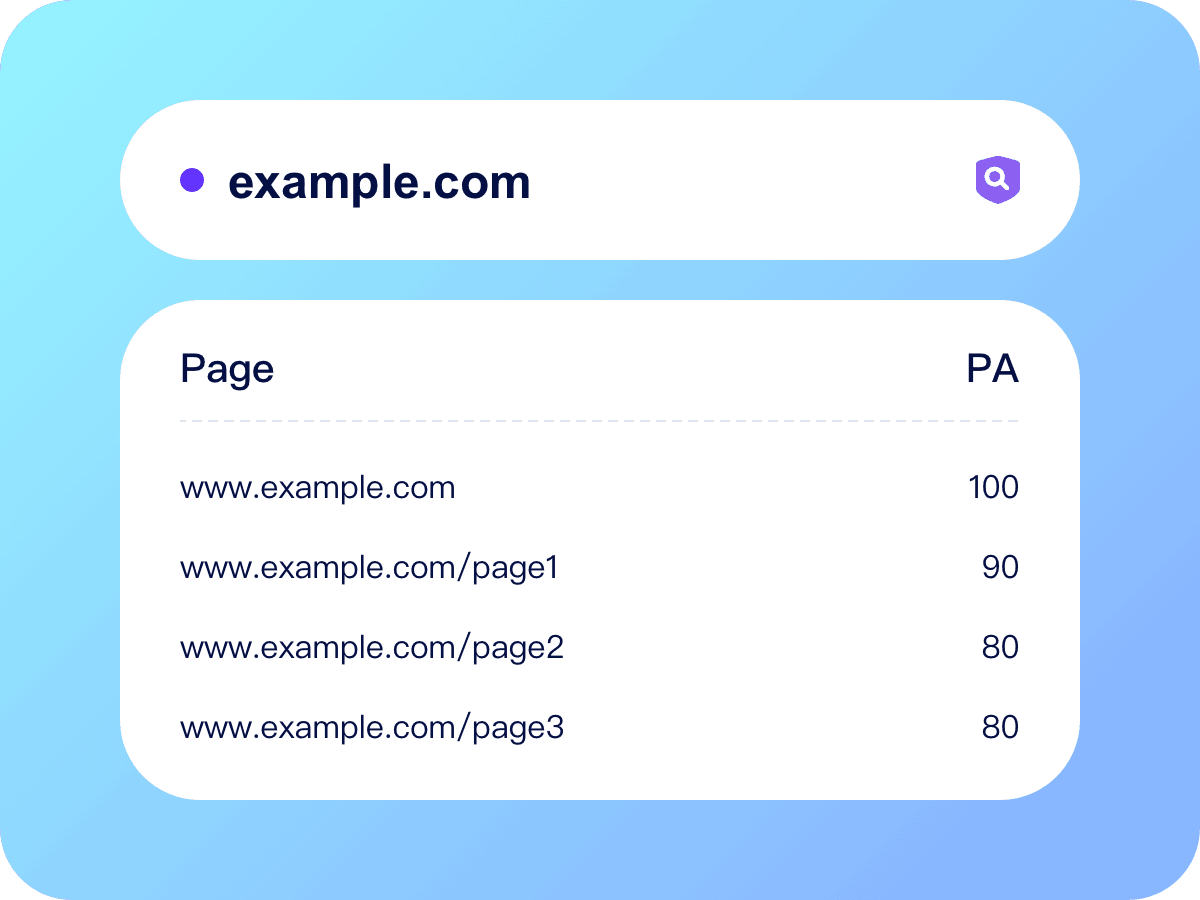 Page authority (PA) ranges 1–100 and measures the authority of a single page. Higher PA means better search ranking. PA varies across pages within the same website.